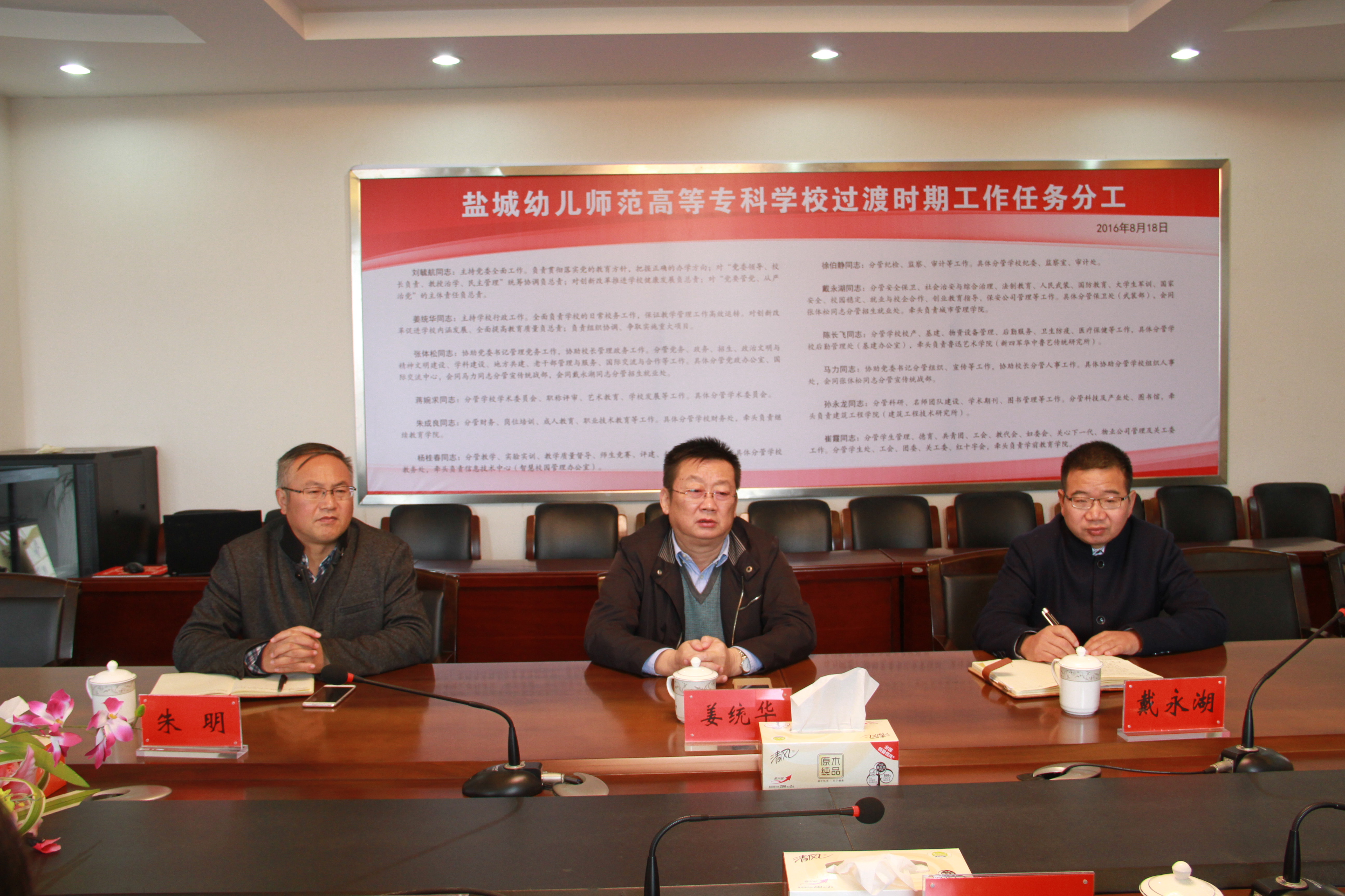 2016年11月8日上午,江苏动铁集团董事长刘晓天一行前来我校洽谈高铁乘务专业校企合作事宜,我校姜统华校长与刘晓天等进行了亲切友好的交谈。