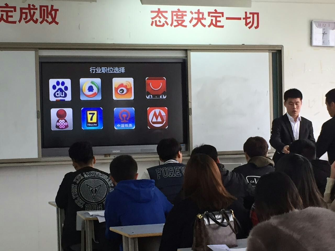 为了提升学生就业能力,提高学生就业待遇和就业率,考虑学生长期职业发展,2017年3月30日上午,我院邀请北京中泰教育集团汪钰锟等人为计算机应用专业13级和14级学生进行就业指导。