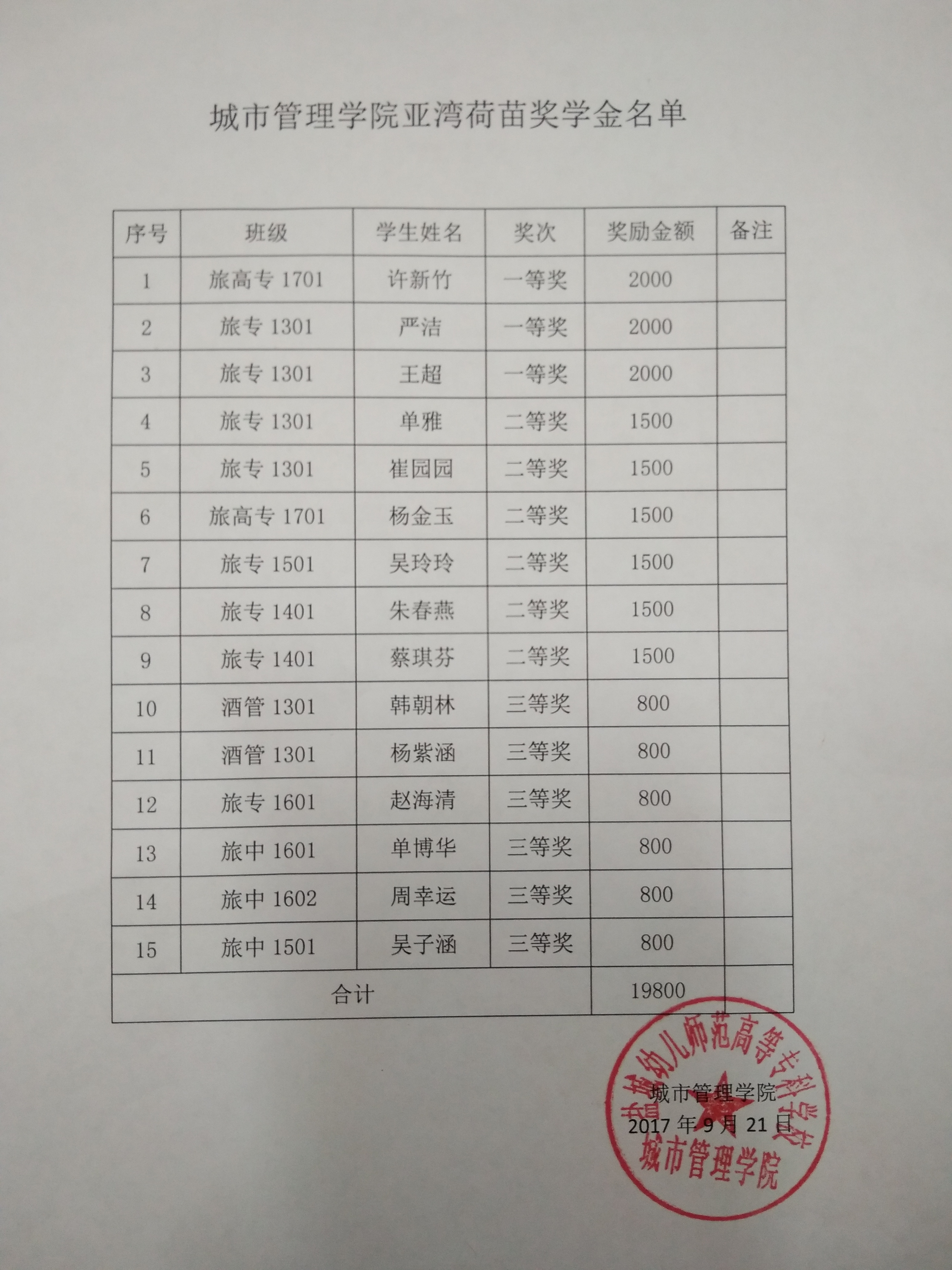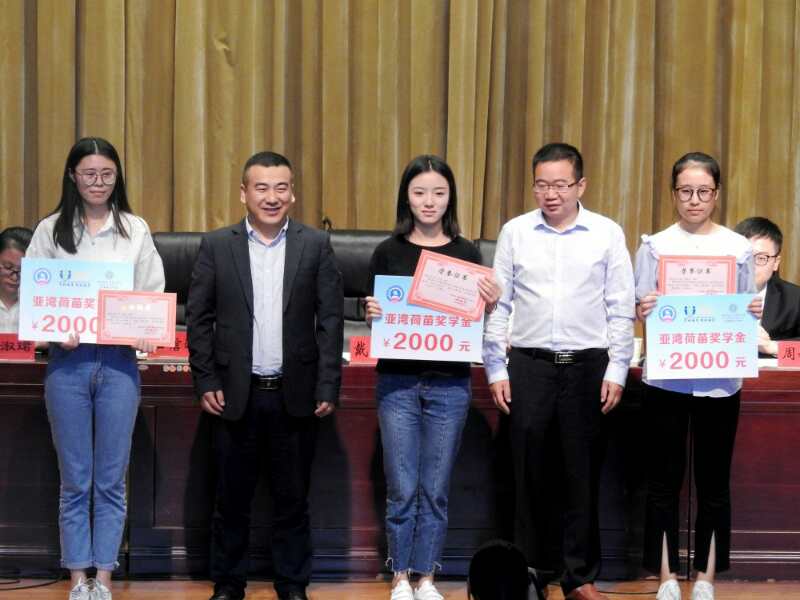 仪式上,校领导戴永湖首先对此次获奖的同学表示了衷心的祝贺,同时他代表学校向亚湾公司对本次活动的支持表示感谢,并对参加仪式的学生提出具体要求,希望同学们抛除“四气”,即傲气、霸气、洋气、娇气,成就更好的自己。随后,陈存英副主任介绍了本次奖学金的评选要求,管建祥副主任宣读亚湾荷苗奖学金获奖学生名单,与会领导向获奖学生颁发了获奖证书并与获奖同学合影留念。