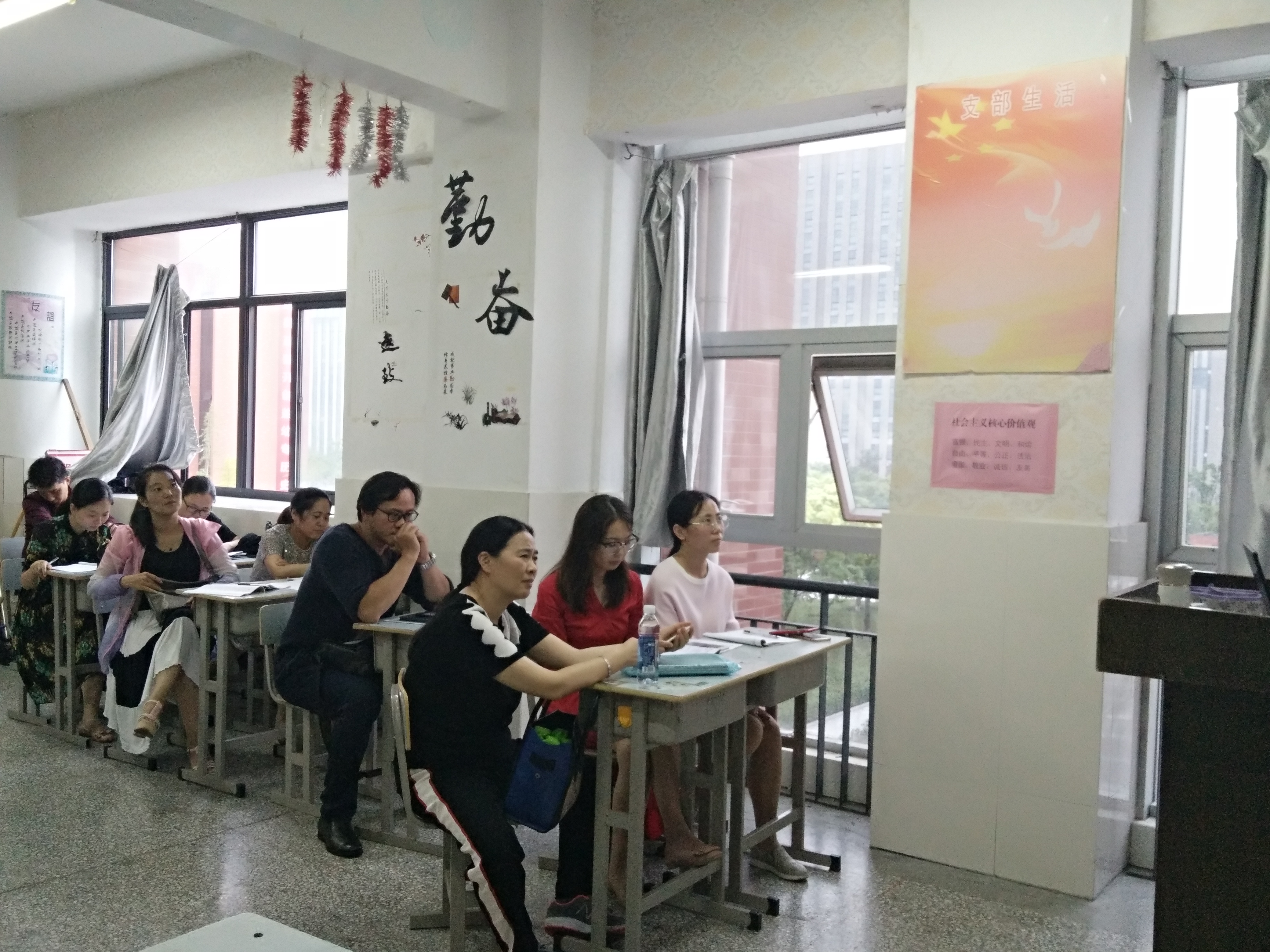 2017年10月11日下午二节课下,黄山萍老师在高乘1501班教室作江苏省财经商贸类专业负责人专业建设及团队领导能力提升省级培训研讨汇报,城市管理学院全体教师出席讲座。