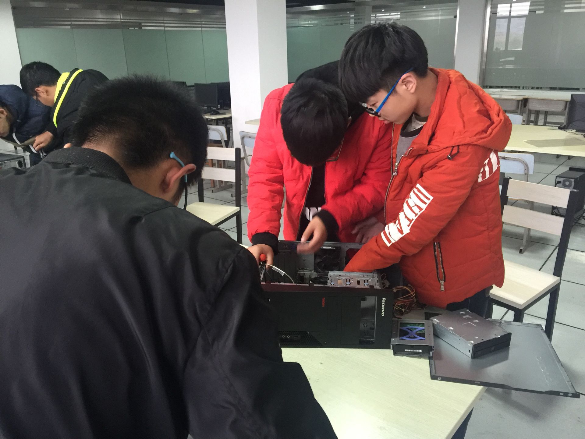 首先是协会会长给参赛选手讲解比赛规则,也为参赛选手详细的讲解了计算机组装与打字比赛的流程和注意事项。比赛开始,几个小组人员迅速投入到拆卸组装去,各组的参赛选手都争分夺秒,看他们娴熟的手法,平时的汗水没白流,复杂的电脑硬件安装对他们来说就好像是玩具拼接,其中更有选手在短短5分钟之内就完成拆装机,使得其他选手佩服不已。再看另一边,打字的各位选手也不逊色,教室内,充满着紧张的氛围和敲击键盘的声音,参赛选手们的手指灵活的在键盘中飞快的跳动着,目光紧盯着屏幕,非常认真、仔细的完成试题。