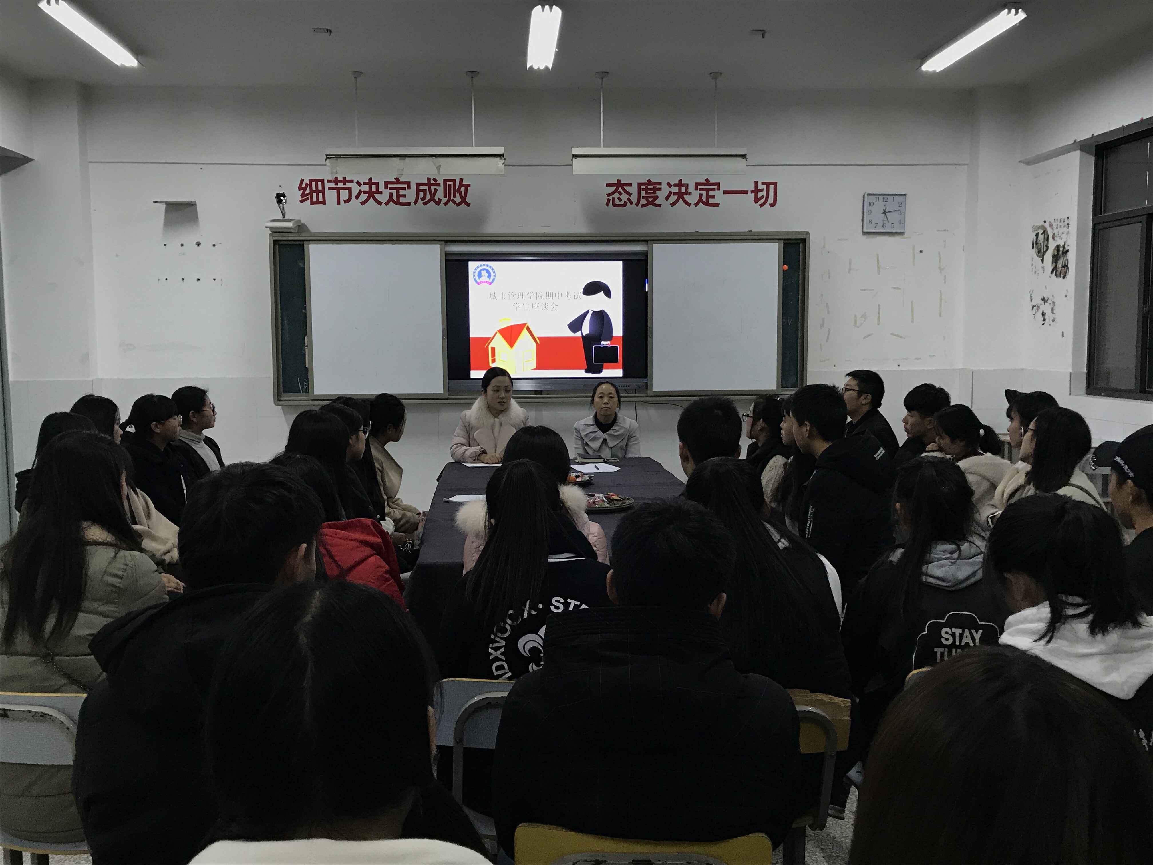 为了更好地了解学生学习动态,加强学院教学管理,11月23日下午5点,城市管理学院在学院多媒体教室召开了期中考试学生座谈会。学院分管教学的副主任陈存英和教学秘书戴玲艳以及各在校班级的学生代表参加了座谈会。