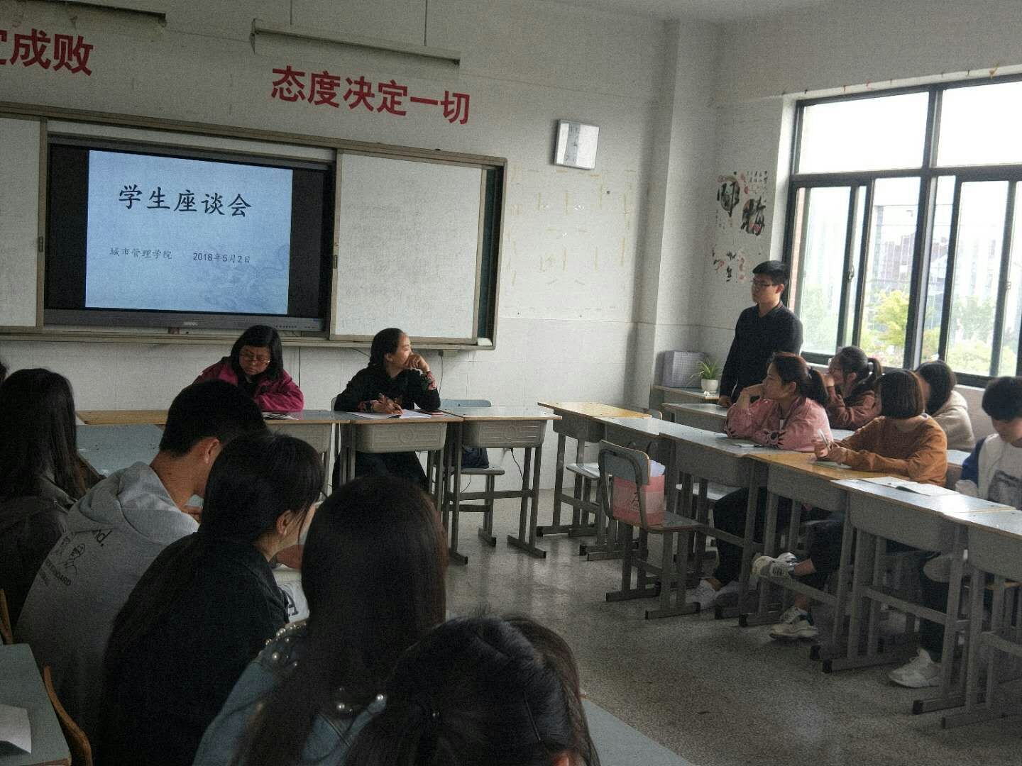 5月2号下午两点,城市管理学院学生期中座谈会在二号教学楼三楼多媒体教师召开,参加座谈会的有学院分管教学副主任陈存英、许宏芹老师及各班级的班长和学习委员。