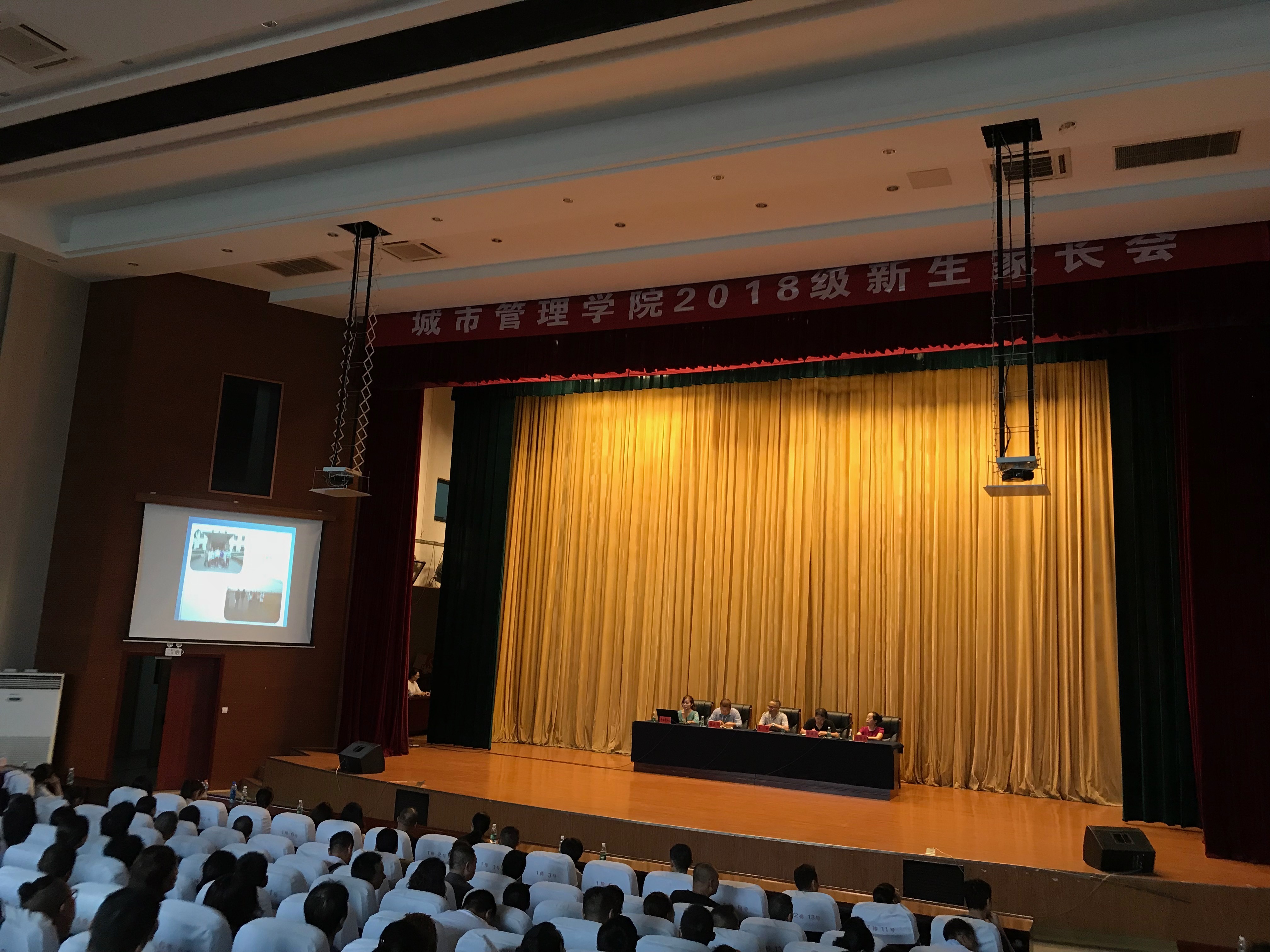 2018年9月15日,城市管理学院迎来了400多名2018级新生,作为新生教育的重要环节,中午十二点半,新生家长会在我校图文信息楼三楼大礼堂准时召开。城市管理学院主任朱明,副主任管建祥、康宏伟、陈存英,学院各新生班班主任及新生家长参加会议。