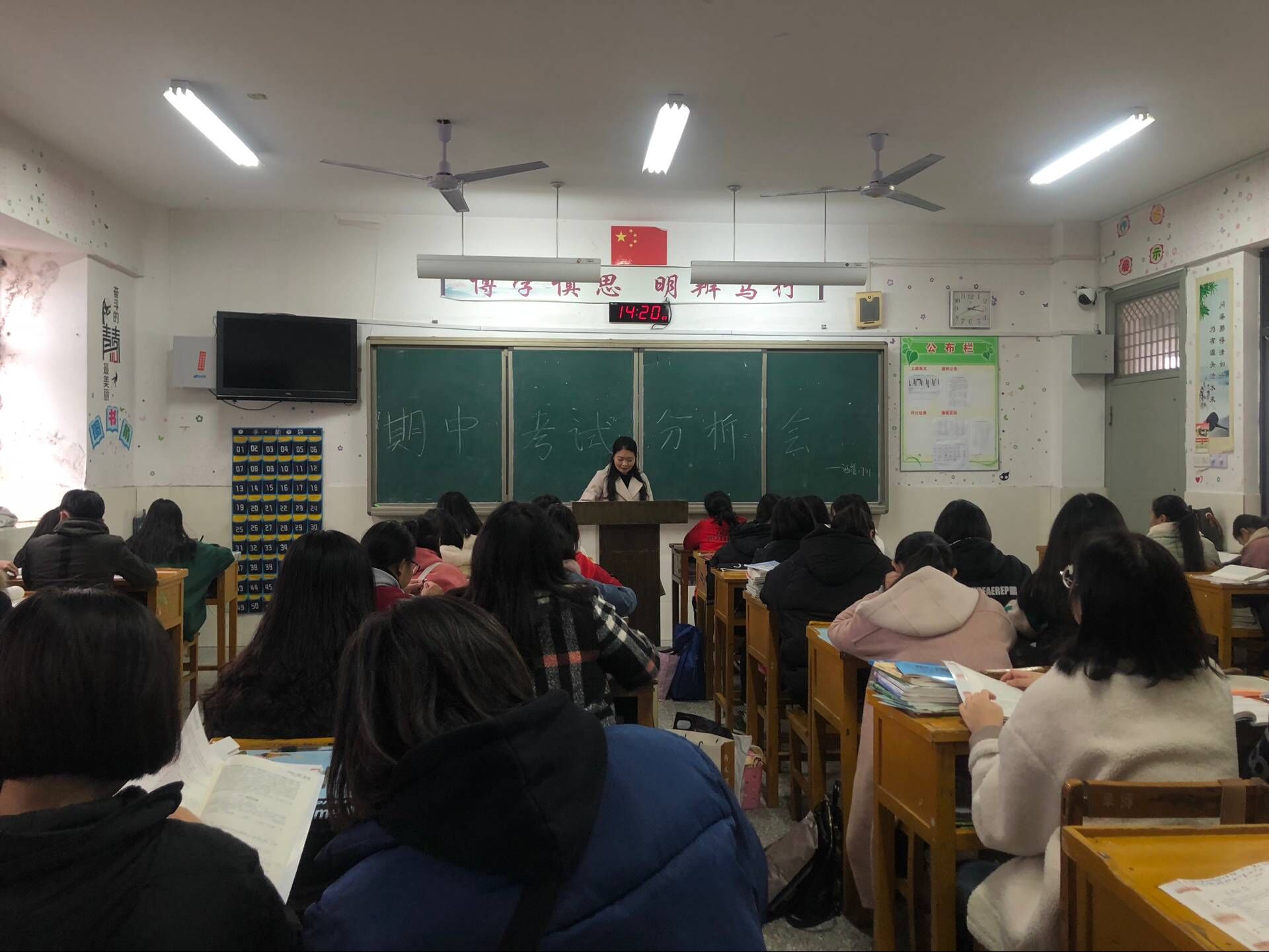 各班级班会由班主任主持,分析学生们各学科的情况,从学科角度指出学生特别是有短板的学生在应该注意的问题,激励学生卯足干劲儿,力争头赶上,不辜负老师的期望。各班级学生针对期中考试查漏补缺,明确前段时间学习过程中的问题,制定适合自己的学习计划。