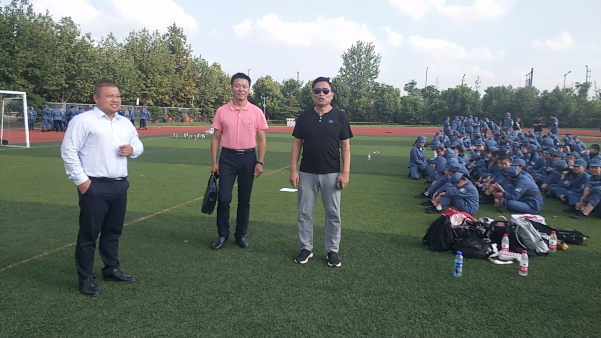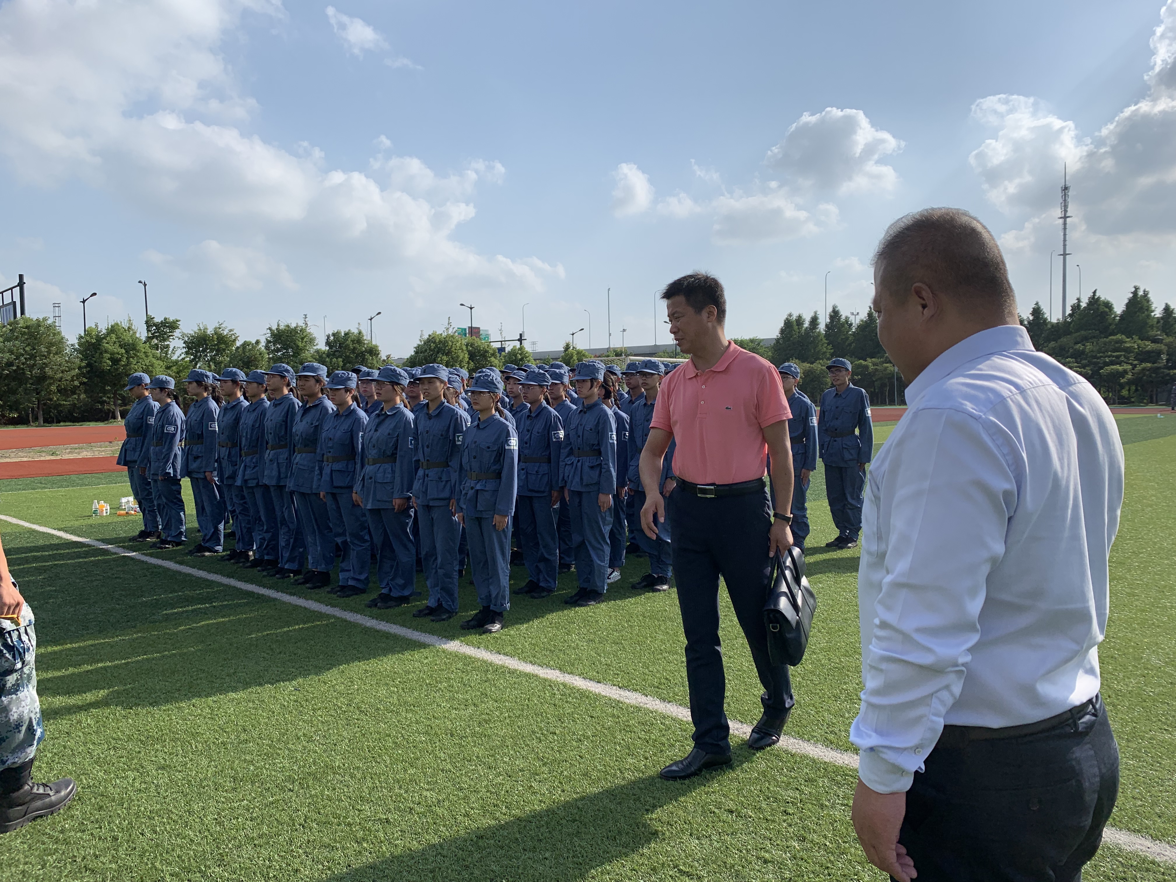 军训第一天,保卫处谢福华处长,城市管理学院党总支李宇健书记,康宏伟副院长到操场看望学院军训新生,领导们亲切的关怀,鼓舞的眼神,都使同学们倍受鼓舞,奋勇争先。尽管天气炎热,但受训的新生们依旧热情不减。绿茵茵的操场上响亮有力的口号,尽显同学们朝气蓬勃的青春活力。