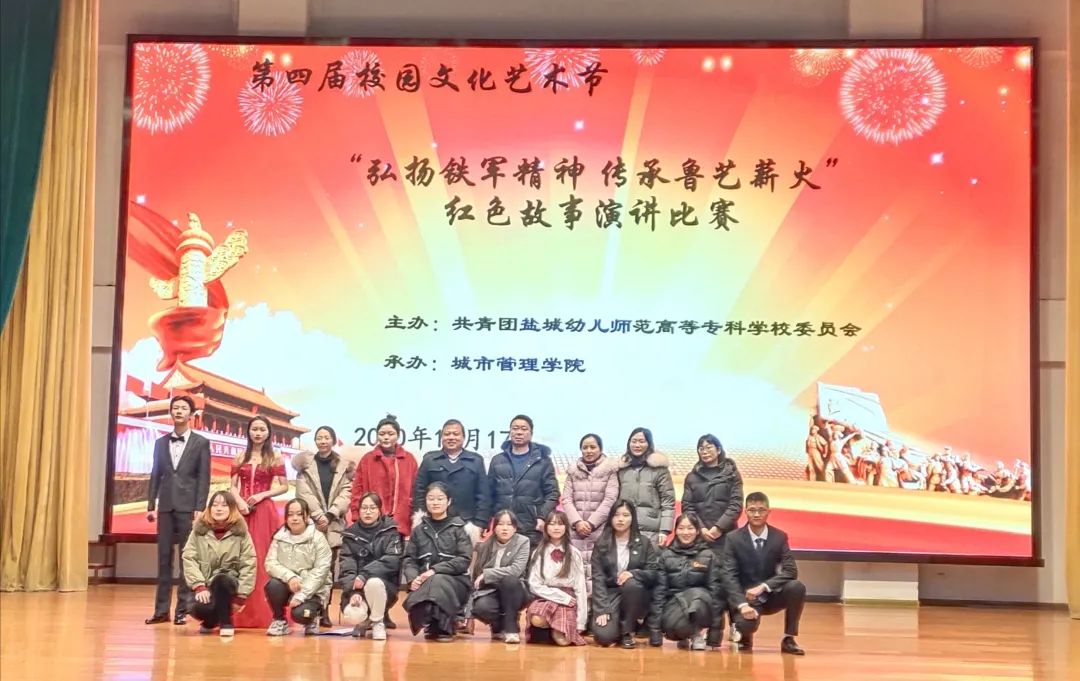 12月17日下午,城市管理学院在行政楼三楼报告厅举办第四届校园文化艺术节之“弘扬铁军精神 传承鲁艺薪火”红色故事演讲比赛。本次比赛邀请建筑工程学院副院长陈庚远,人文教育学院团总支书记张芸,学前二部团总支书记刘蕾,鲁迅艺术学院吴音子老师,城市管理学院党总支书记张子丽、副院长康宏伟、团总支书记童彤、王娟老师担任评委。