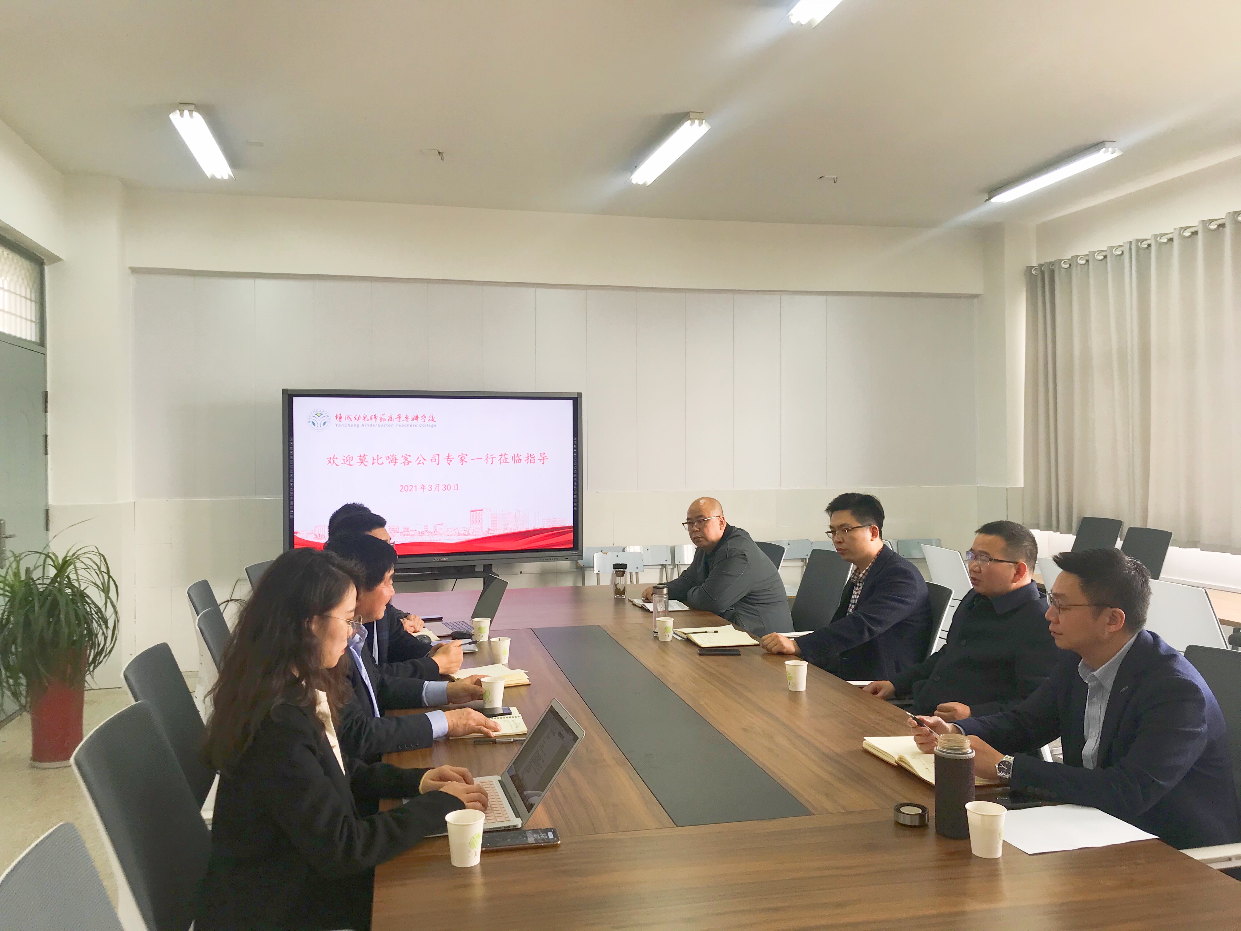 3月30日下午,深圳莫比嗨客树莓派智能机器人有限公司产教融合事业部总裁刘京国、执行总裁王俊玲、商务总监刘志军、盐城基地经理蔡蕾一行四人到我校城市管理学院就进一步深化校企合作进行洽谈,我校党委委员、副校长戴永湖,城市管理学院李鹏院长、顾传甲副院长,大数据专业孟伟东博士参加洽谈会。