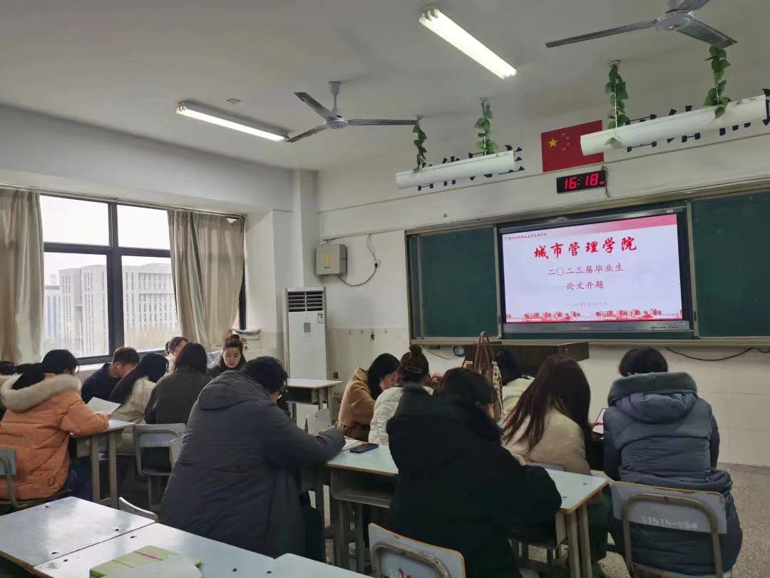 2023年2月22日下午,城市管理学院组织2023届毕业生毕业论文开题活动,学院共383名毕业生参加了开题。此次开题采取线下和线上相结合的方式,2020级高起点毕业生在现场进行开题,2018级初起点毕业生通过线上进行开题。学院组成7个开题组,由学院领导班子担任组长,所有指导老师参与开题。
