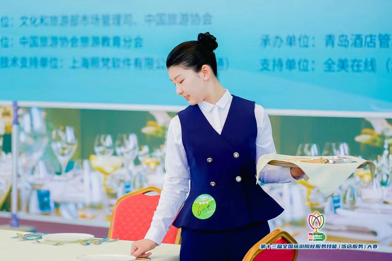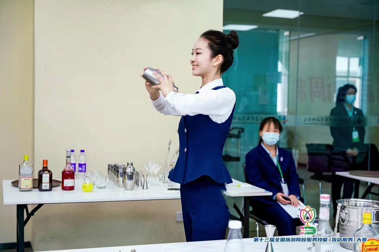 本次大赛由文化和旅游部市场管理司、中国旅游协会指导,中国旅游协会旅游教育分会主办,青岛酒店管理职业技术学院承办。我校参加的高职、中职两个个组别,分中餐宴会摆台、西餐宴会摆台、中式铺床、鸡尾酒调制四个项目,各项目均由理论知识考核、英语水平测试、技能实操三项比赛内容组成。赛项内容涵盖了旅游大类专业教学的核心技能和职业素养,强调工作过程的规范化、实境化、流程化与职业化,综合考核旅游大类专业学生服务过程中的综合素质及能力。优秀成绩的取得,离不开学校和学院领导的正确引领和全力支持,离不开指导老师们的倾情付出,离不开选手勤奋刻苦的训练。